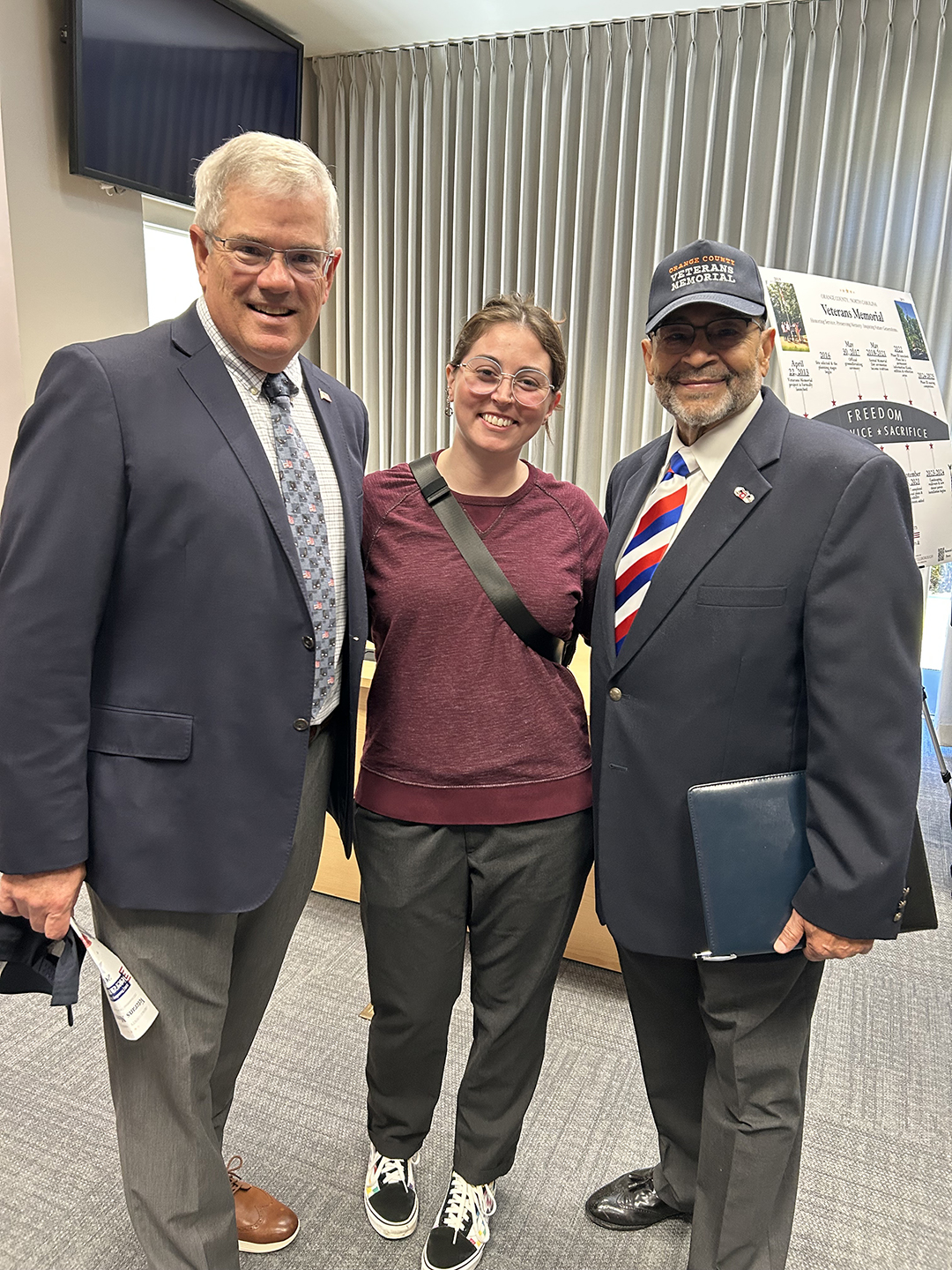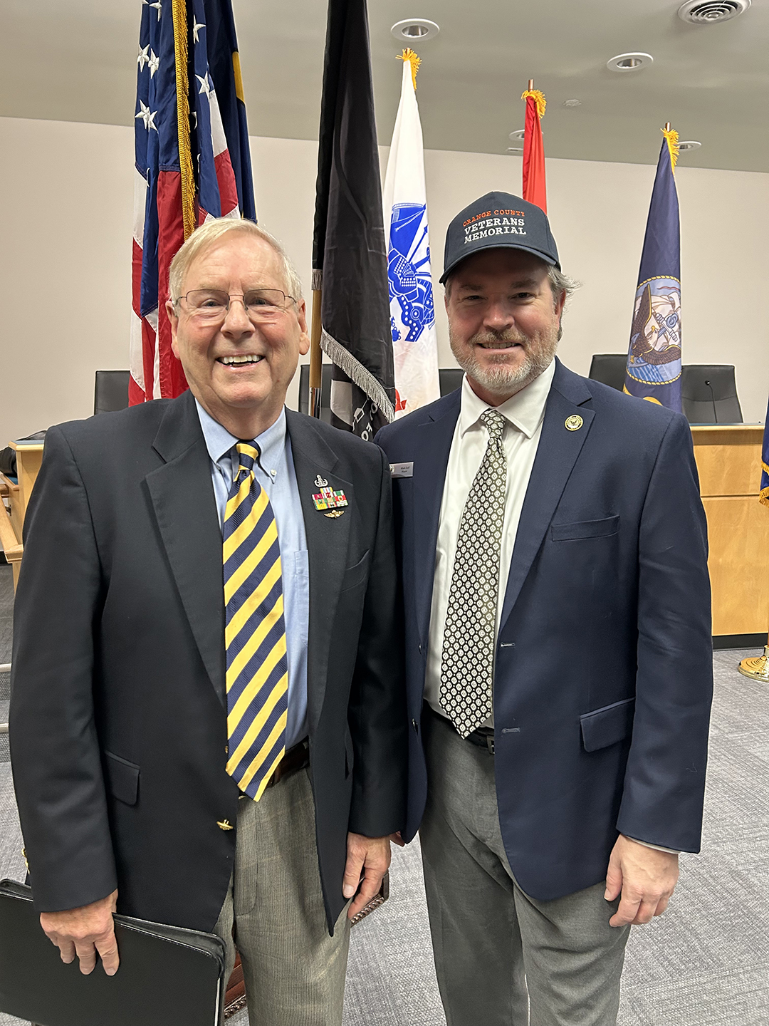 The final concept design plan was then presented formally at the Orange County Commissioners Meeting and accepted. Now the project is fully in motion. The site construction began with a groundbreaking on Memorial Day 2017 and the Flag Plaza dedication, part of Phase I construction, on Memorial Day 2018. The Memorial site is currently open, although not completed, and welcomes visitors. As of Spring 2023, we are moving forward on Phase 3, the permanent kiosk.